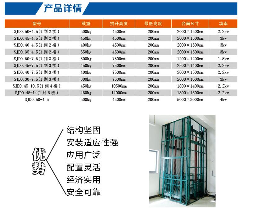 導軌式液壓升降貨梯最大提升高度為20米,最大提升載荷5噸,最大停站數(shù)為6層,速度為0.10-0.25米/秒,廣泛適用于工廠、倉庫、車庫等有貨物升降需求的場所。